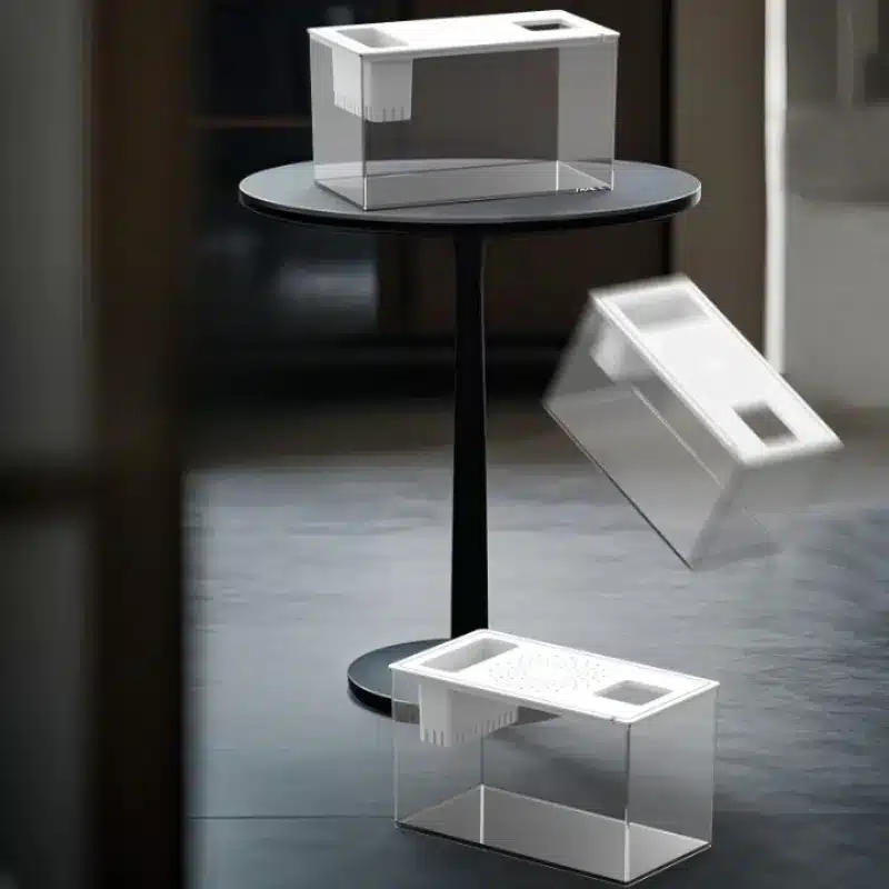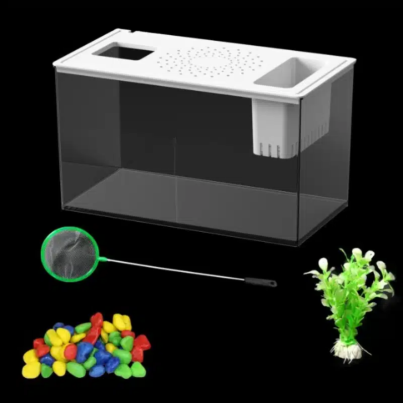 Fabriqué en plastique PET incassable, cet aquarium est léger, résistant et transparent, idéal pour profiter pleinement de la beauté de vos poissons ou crevettes. Sa conception soignée garantit une vue claire et lumineuse à chaque regard, sans risque de fissure ni de casse.