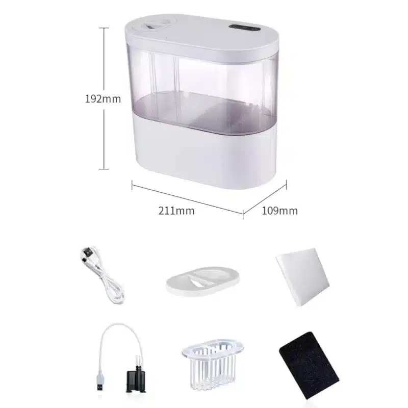 Je mis cet aquarium de 4l sur mon petit bureau d’ordinateur, aucun bruit, juste un léger bruit de l’eau qui circule. Effet relax garanti.