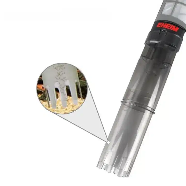 Ce modèle convient aux aquariums d’eau douce et d’eau de mer et fonctionne parfaitement dans des bacs jusqu’à 60 cm de profondeur. Conçu pour le gravier de plus de 2 mm, il nettoie en douceur sans aspirer le substrat. L’embout dentelé ramasse les impuretés tout en protégeant le fond de l’aquarium.