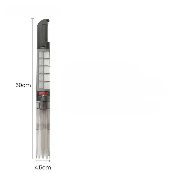 Avec sa taille d’environ 60 cm de long et 4,5 cm de large, cet appareil compact se manipule facilement d’une seule main. Il est assez léger pour ne pas fatiguer et assez précis pour atteindre tous les recoins du bac. Vous profitez ainsi d’un nettoyage efficace sans avoir à déplacer vos poissons ou vos décorations.