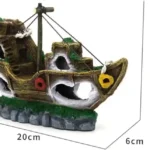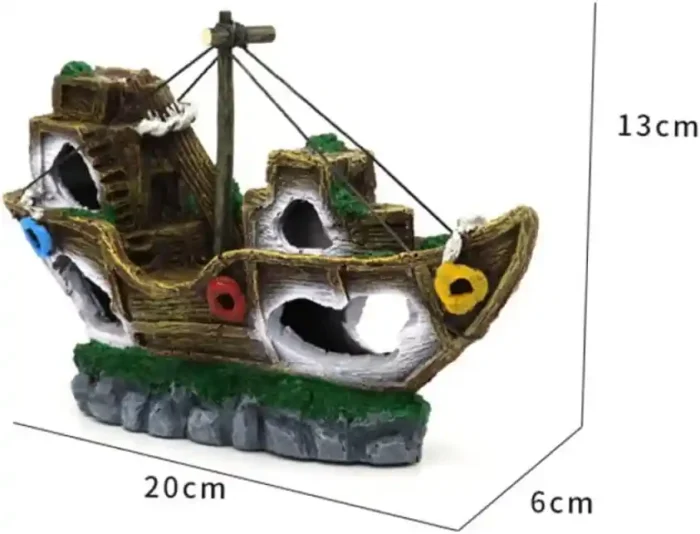 La décoration bateau aquarium rocailleuse mesure 20 cm de long, 13 cm de haut et 6 cm de profondeur, ce qui la rend visible sans prendre trop de place. Elle est assez grande pour occuper l’espace, mais assez fine pour laisser de la place aux plantes et autres éléments.