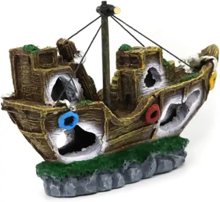 Cette décoration bateau aquarium rocailleuse est parfaite pour ceux qui veulent un décor original, naturel et utile pour le bien-être de leurs poissons.