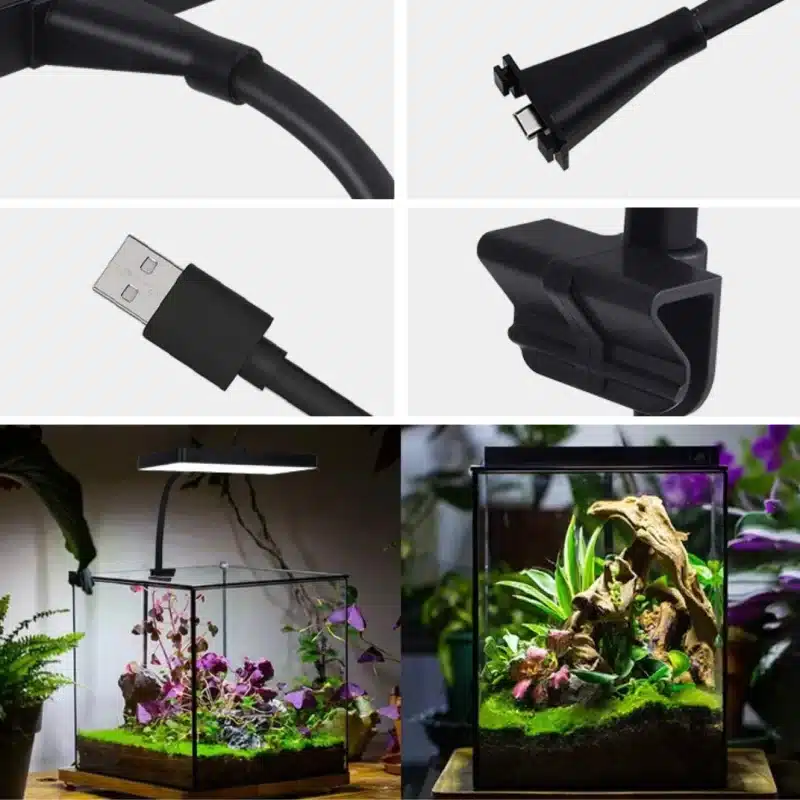 Découvrez comme l’Eclairage Nano Aquarium Plante LED 25L transforme votre bac dès les premières secondes. Vous voyez tout de suite une lumière plus belle, plus vive, qui met en avant chaque détail de votre décor. Sa forme fine, légère et solide s’intègre parfaitement sans gêner la vue. Vous la fixez en un geste grâce à sa pince universelle 5–8 mm et vous dirigez la lumière où vous le souhaitez avec son bras flexible. Tout devient plus simple et plus agréable à ajuster.
