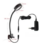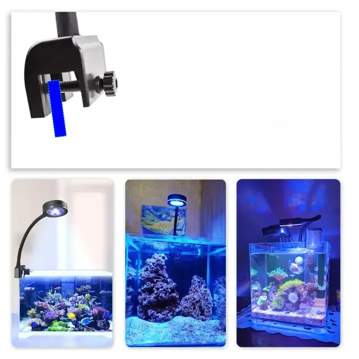 Le bras flexible permet d’orienter la lampe facilement, sans bouger le support ou déranger l’environnement de l’aquarium. Une fois en place, elle garde la position voulue pour cibler avec précision les zones à éclairer. La fixation s’adapte aux rebords jusqu’à 2,5 cm, ce qui la rend compatible avec la plupart des nano-aquariums ouverts. Il suffit de serrer la pince et c’est prêt.
