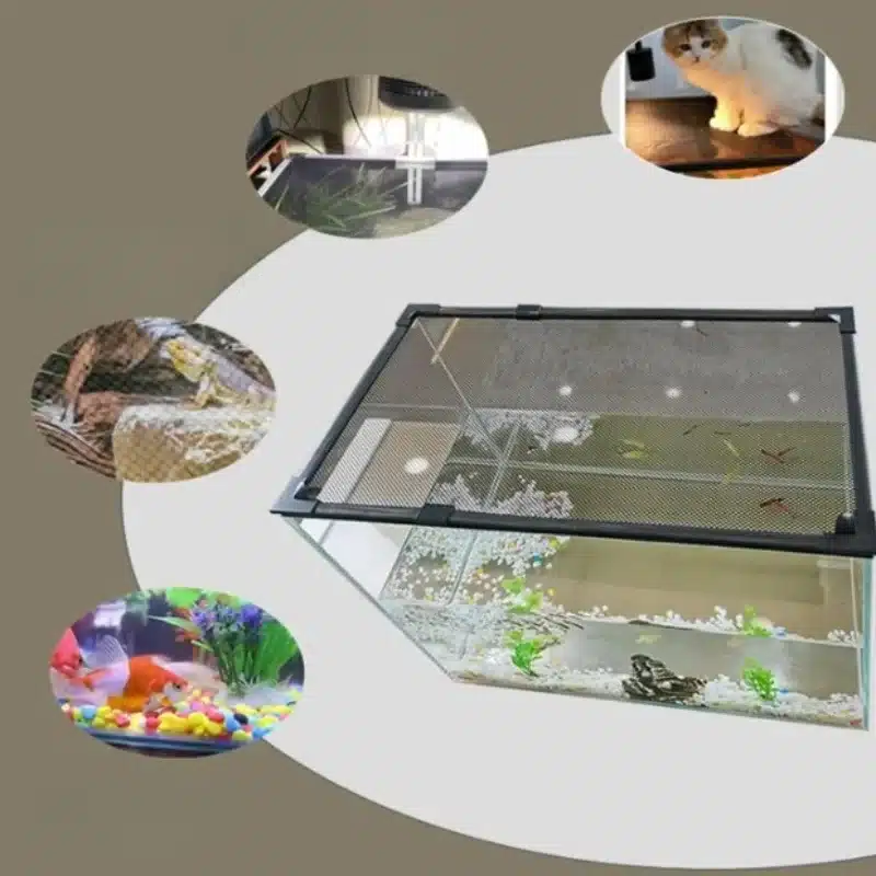 Le cadre est rigide et stable : il tient bien en place sur les rebords, sans bouger au quotidien. Vous gagnez une vraie tranquillité, même si vous avez des poissons vifs, des crevettes curieuses, ou un chat qui aime observer le bac. Regardez : la surface est protégée, sans étouffer l’aquarium.