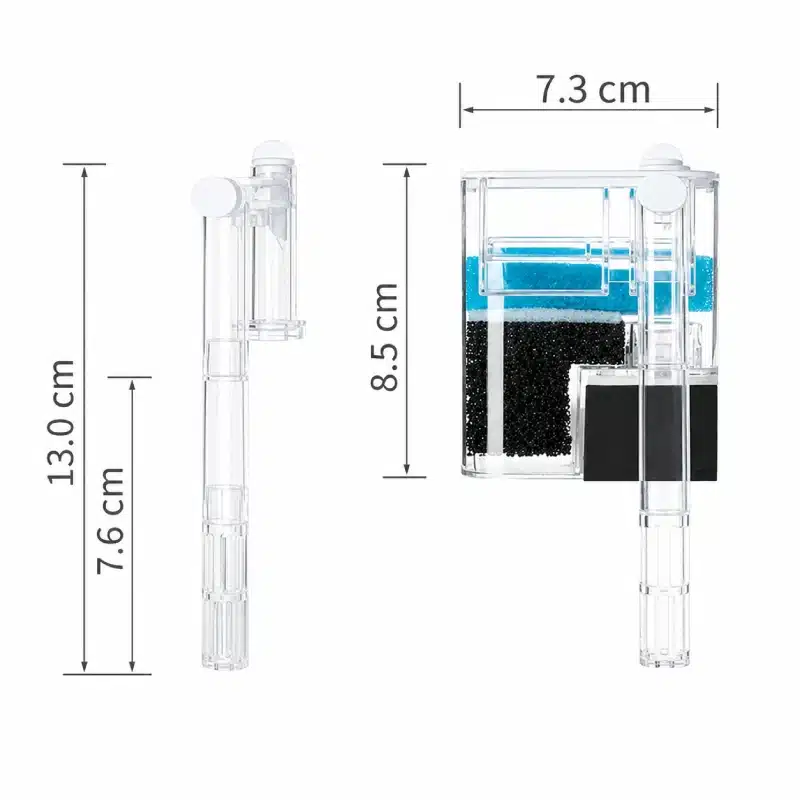 Regardez votre aquarium devenir plus vivant dès l’installation grâce à un écoulement doux qui crée un effet cascade naturel et apaisant. Le Filtre Aquarium Cascade 20-60L Discret se fixe au bord du bac et s’intègre sans encombrer votre espace.