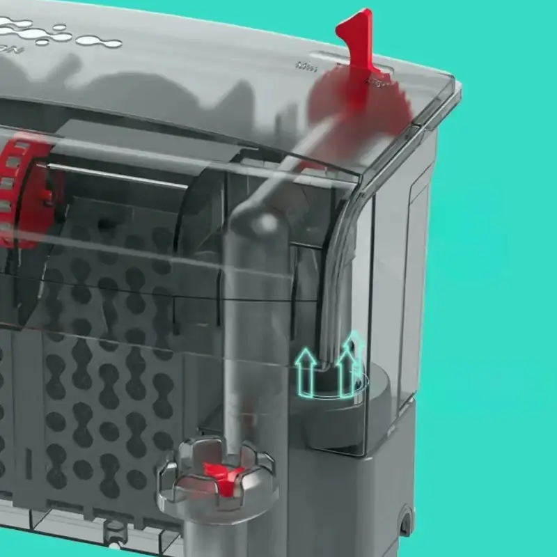 Fini le film gras en surface. L’hélice rotative aspire les impuretés et rend la surface claire, pour un aquarium agréable à regarder sous tous les angles.