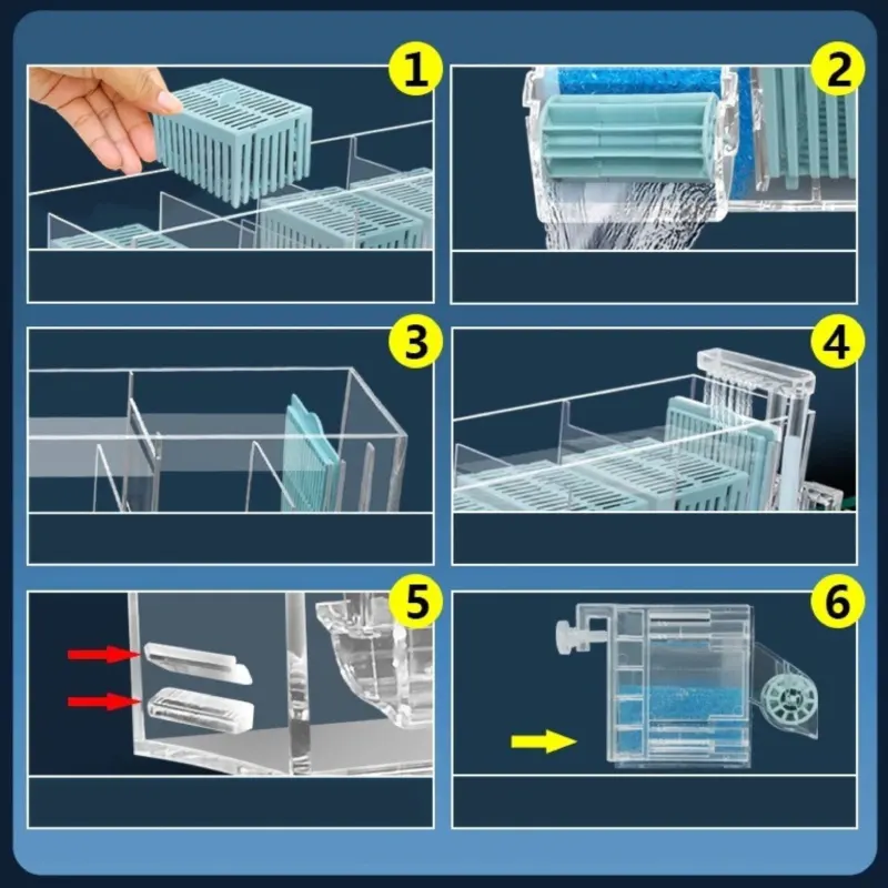 Avec le Filtre Cascade Aquarium 100L Multi-Chambres, vous bénéficiez d’une pompe intégrée 6W – 400 L/h silencieuse et réglable. Vous pouvez ajuster le débit selon vos besoins tout en profitant d’un doux ruissellement qui ne dérange pas votre quotidien, même dans une chambre ou un salon.