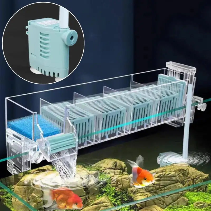 Ce Filtre Cascade Aquarium 100L Multi-Chambres combine eau claire en continu et plaisir visuel pour transformer votre bac en un espace vivant et équilibré.