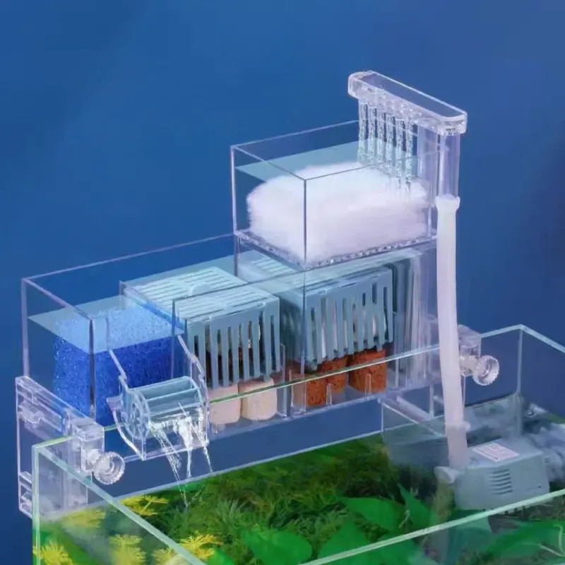 Avec le Filtre Cascade Aquarium 60L Oxygénant avec Pompe à Eau Intégrée, profitez d’une eau toujours limpide où vos poissons évoluent dans un environnement sain et rassurant. Le ruissellement forme une cascade apaisante ou une pluie fine délicate, qui apporte une touche visuelle agréable à votre bac tout en améliorant l’oxygénation de l’eau.