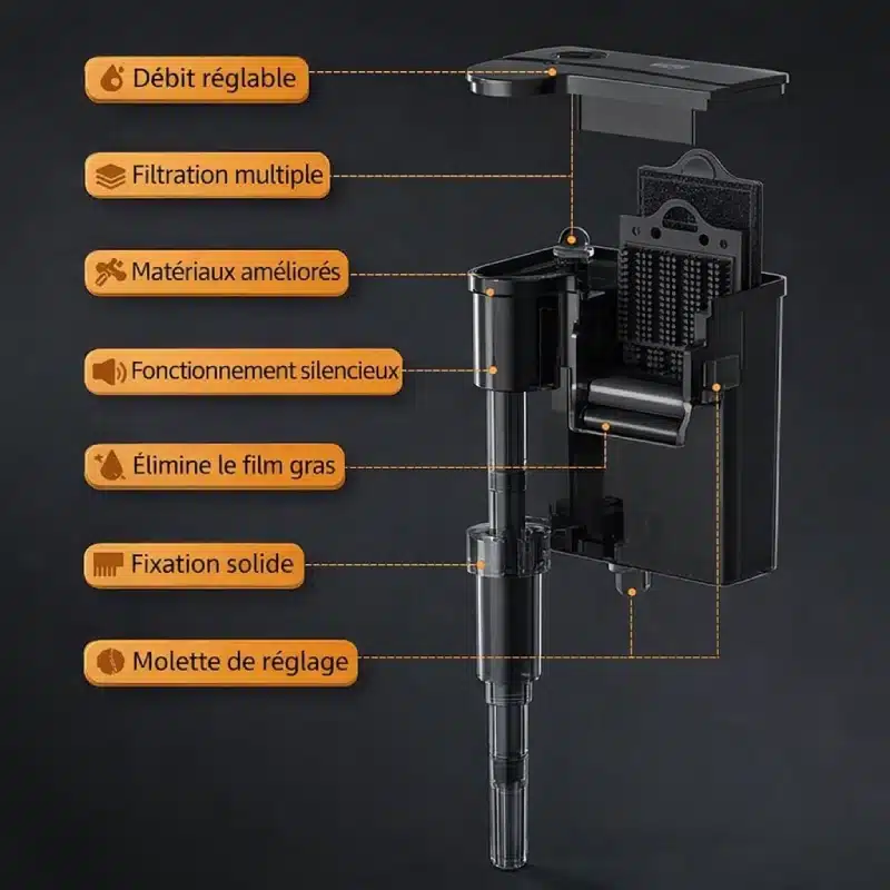 Installez-le en quelques secondes sans effort. Fixez le Filtre Cascade Nano Aquarium 20L au bord de votre aquarium grâce aux clips ajustables, sans outil compliqué.