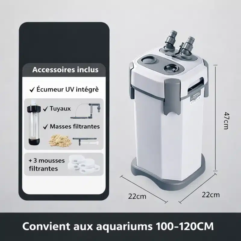 Choisissez le Filtre Externe Aquarium 400L UV et profitez d’un aquarium plus beau, sans effort au quotidien.