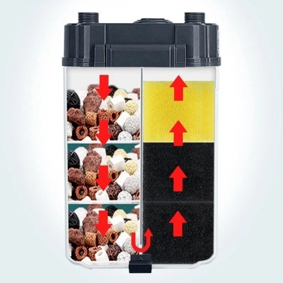 Le filtre est compact et ne prend pas de place dans l’aquarium. Le débit est suffisant pour mon 30L. Un peu de réglage au début mais après ça tourne bien.