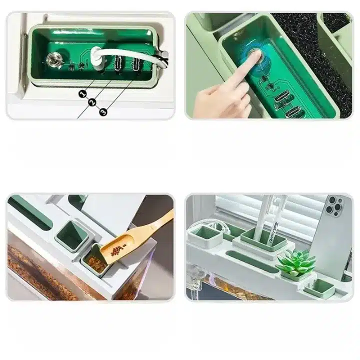 Ce mini aquarium de bureau 8l avec pompe ne sert pas qu’à décorer, il apaise, inspire et attire les regards tout en vous aidant à garder un espace propre et bien rangé. Vous travaillez, l’eau bouge doucement, vos poissons nagent tranquillement, vous respirez un peu plus lentement sans même vous en rendre compte.