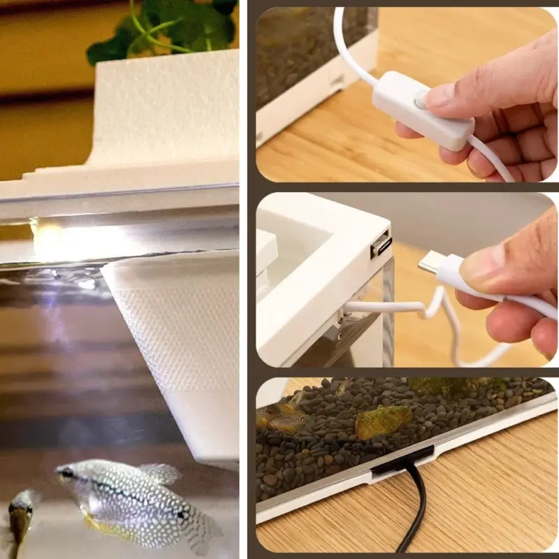 Son secret réside dans son système complet : une pompe à eau USB silencieuse, un éclairage LED intégré et un tapis chauffant inclus. L’eau reste toujours propre, oxygénée et à la température idéale pour vos Bettas, guppys ou crevettes. Vous n’avez rien à régler, tout fonctionne automatiquement pour garantir le bien-être de vos poissons et votre tranquillité d’esprit.