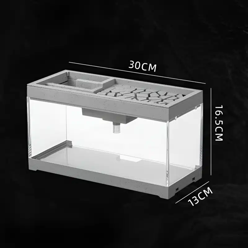 Avec son design zen façon pierre et nature miniature, ce petit aquarium 6l avec pompe devient un objet de déco à part entière. Sa longueur de 30 cm permet d’installer un décor complet dans un espace réduit, idéal pour créer un coin détente chez vous ou au travail.