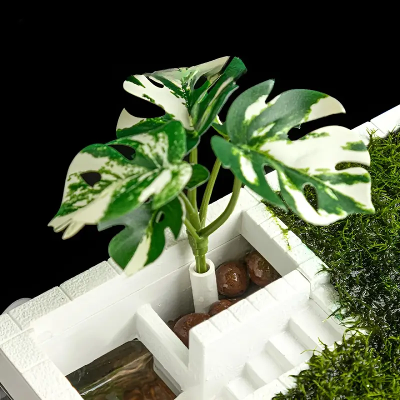 Le couvercle propose un mini jardin au-dessus de l’eau avec mousse et espace pour une plante. Vous ajoutez une petite plante verte et vous obtenez une ambiance naturelle proche d’un terrarium, idéale pour égayer une pièce de travail ou une chambre.