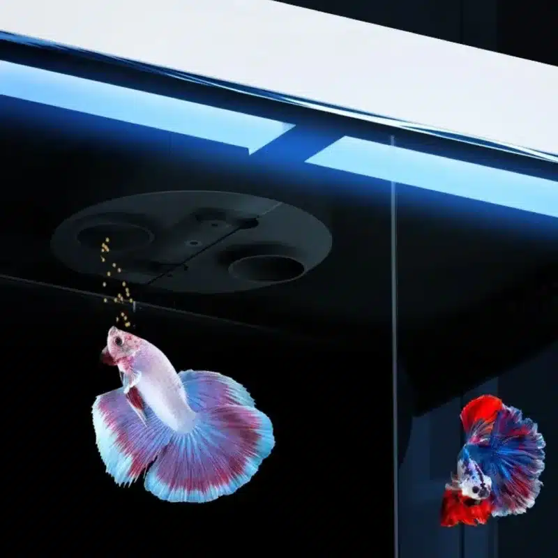 Le distributeur automatique de nourriture intelligent vous libère de la contrainte des repas. Vous pouvez le programmer via l’application mobile pour nourrir vos poissons même quand vous êtes absent. Deux sorties permettent d’adapter la dose à vos besoins, sans gaspillage ni excès.