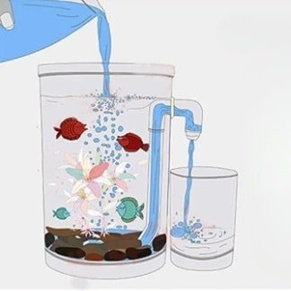Grâce à son système autonettoyant intelligent, l’eau se renouvelle naturellement par la pression de l’eau propre. Vous ajoutez simplement un peu d’eau douce, et l’eau sale s’évacue automatiquement par le petit tuyau sur le côté. En quelques secondes, votre aquarium reste propre et clair, sans avoir besoin d’un entretien régulier.