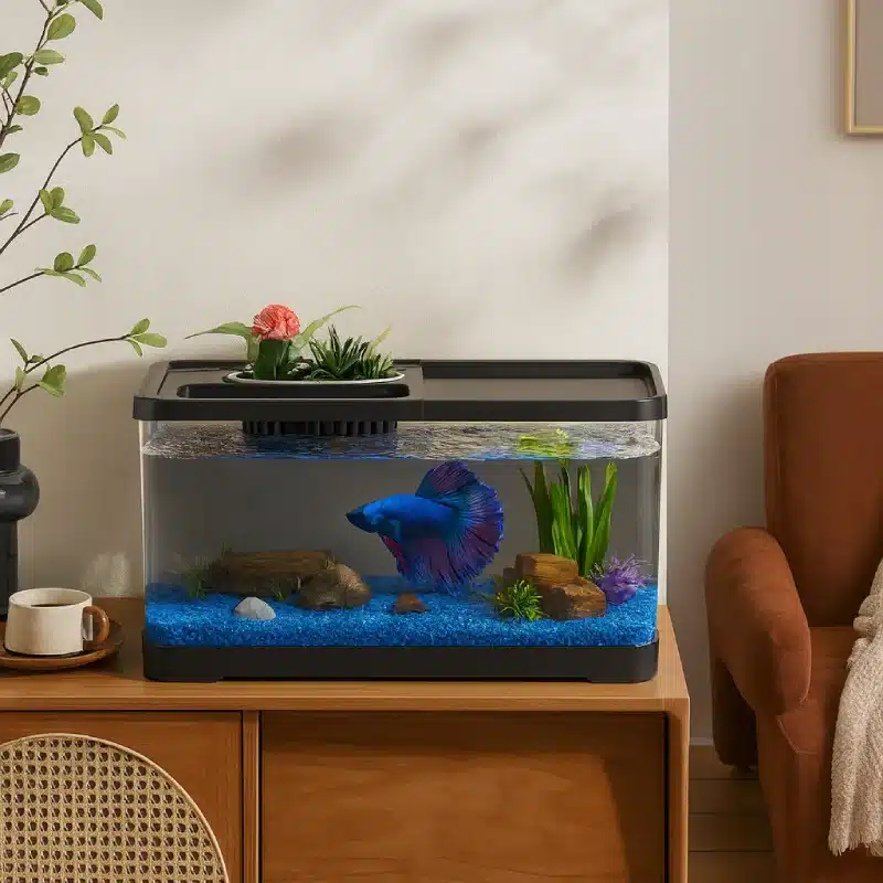 Découvrez une eau claire et lumineuse qui met votre poisson en valeur dès le premier regard. Avec sa cuve ultra-transparente, vous voyez chaque mouvement sans effort. Regardez comme votre Petit Aquarium pour Combattant 15L transforme votre espace en un coin apaisant dès qu’il est posé sur votre bureau ou votre table.