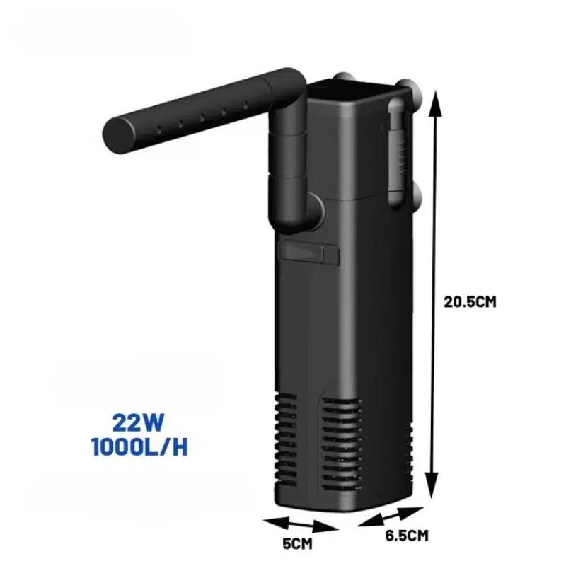 22W de puissance pour jusqu’à 1000L d’eau brassée par heure : idéal si vous voulez une eau claire sans effort. Ce filtre convient aux aquariums jusqu’à 150 litres, parfait si vous voulez garder une réserve de puissance pour un bac bien peuplé ou planté. Avec ses dimensions compactes (20,5 × 6,5 × 5 cm), il se fond discrètement dans le décor.