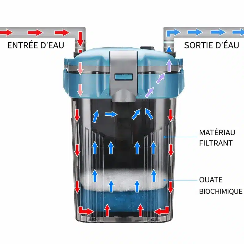 Profitez d’une filtration multi-niveaux qui retient les saletés visibles tout en aidant à garder une eau plus stable au quotidien. Avec son débit puissant de 450 L/h, l’eau est bien brassée, ce qui évite les zones “mortes” et donne un aquarium plus vivant. Sa grande capacité de 2 litres laisse plus de place aux masses filtrantes, donc vous gagnez une filtration plus efficace et moins d’entretien sur la durée.