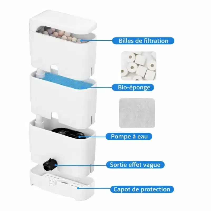 Regardez comme l’eau reste plus propre et plus saine grâce à une filtration multi-niveaux avec billes et mousse. Vous gagnez un aquarium plus agréable, avec moins d’impuretés visibles au quotidien.