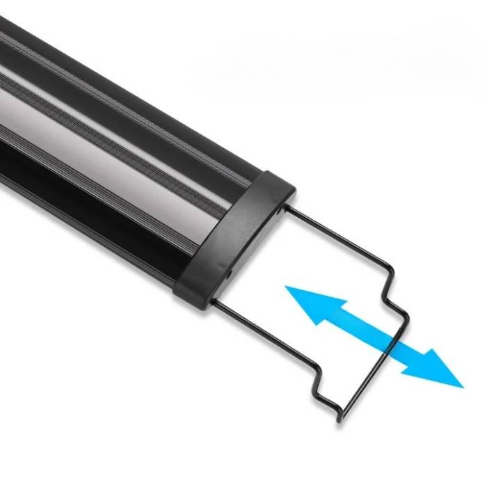 Le support ajustable de 82 à 120 cm s’adapte à la plupart des aquariums standards. Pas besoin de bricolage. En quelques secondes, votre rampe est installée et prête à illuminer votre univers aquatique.