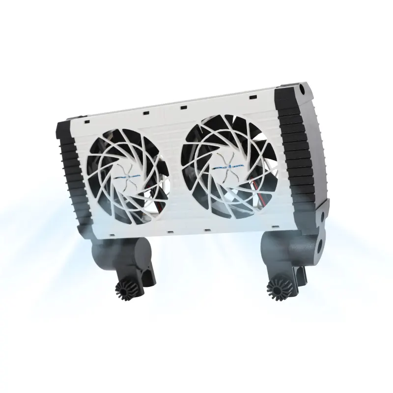 Le refroidisseur d’eau aquarium à double ventilateur fait baisser la température de l’eau par simple évaporation, sans bruit ni vibration. Il s’installe directement sur le bord de l’aquarium grâce à des pinces solides et réglables. Il suffit d’orienter les ventilateurs vers la surface pour rafraîchir efficacement l’eau, sans gêner les poissons.